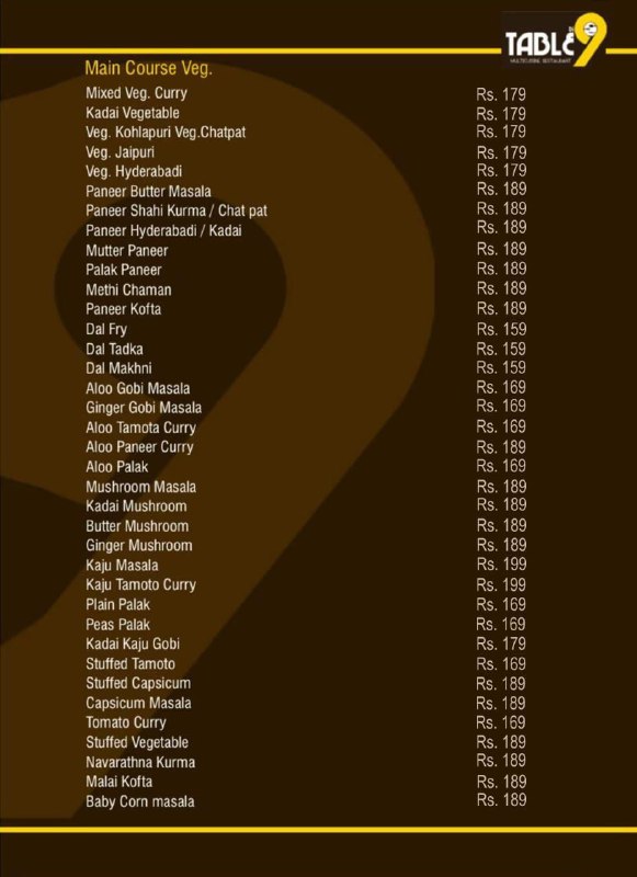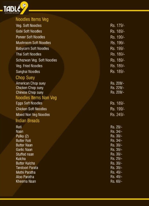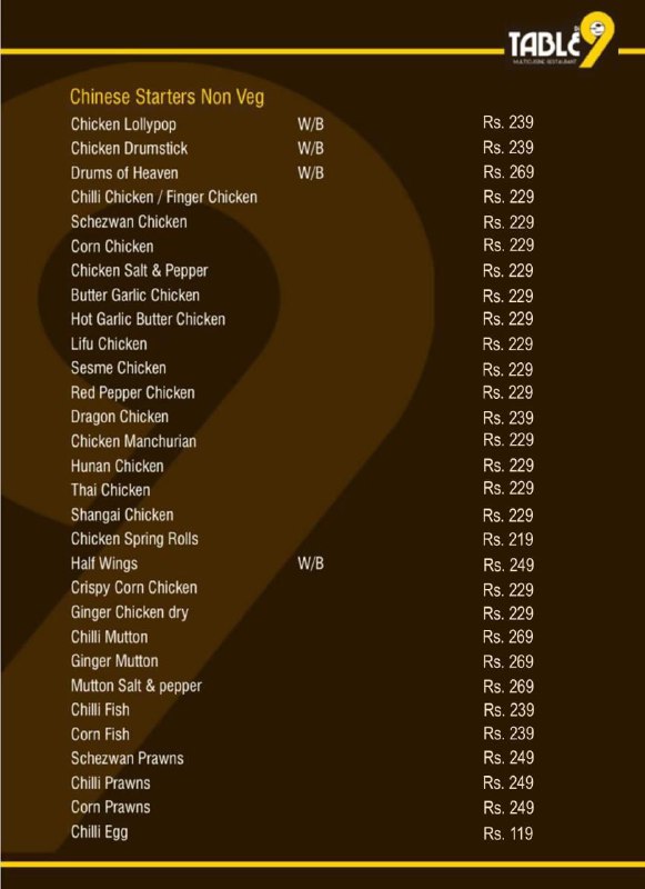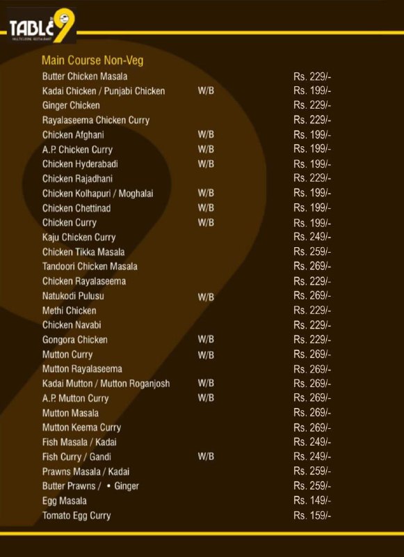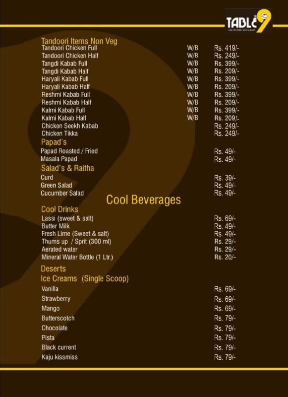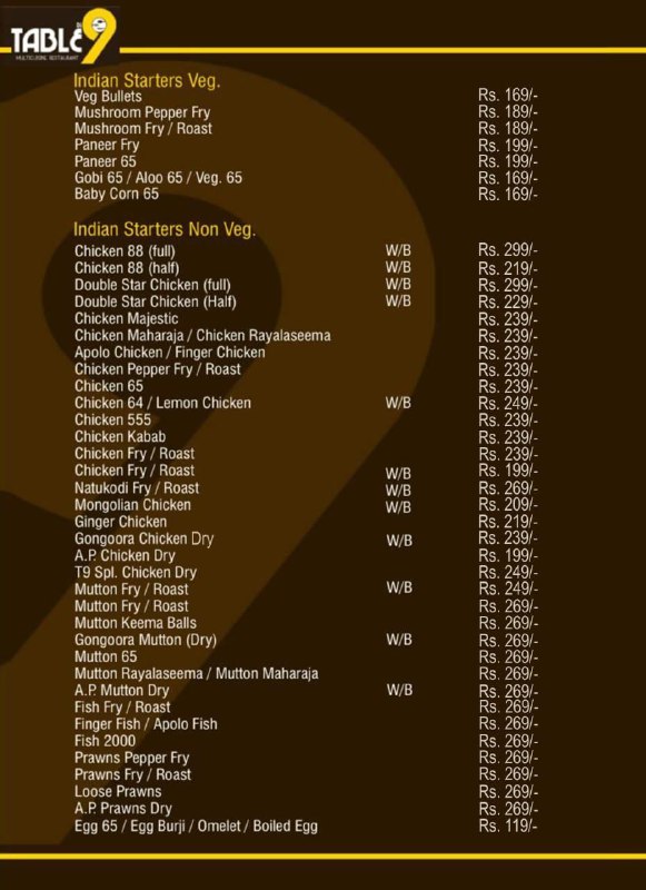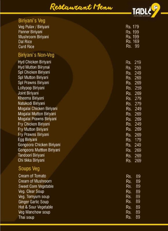 Di Table 9 Family Restaurant | KT Road, Tirupati Menu